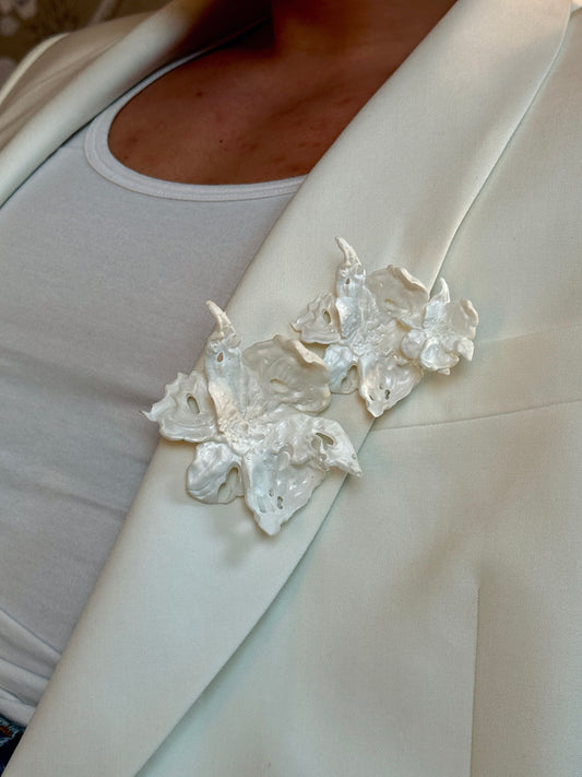 White Daffodil Mega Flower Blossom Brooch
