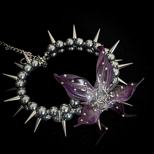 Spiked Dark Angel Orchid Pearl Choker