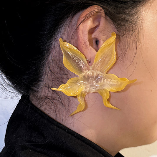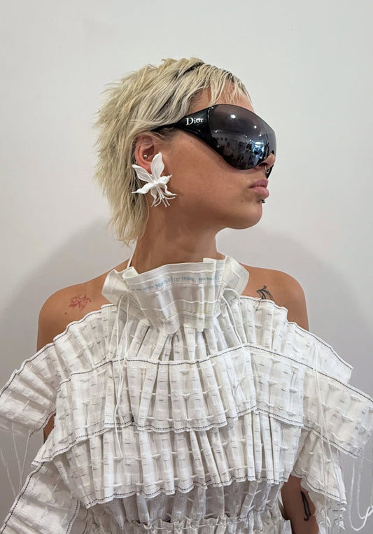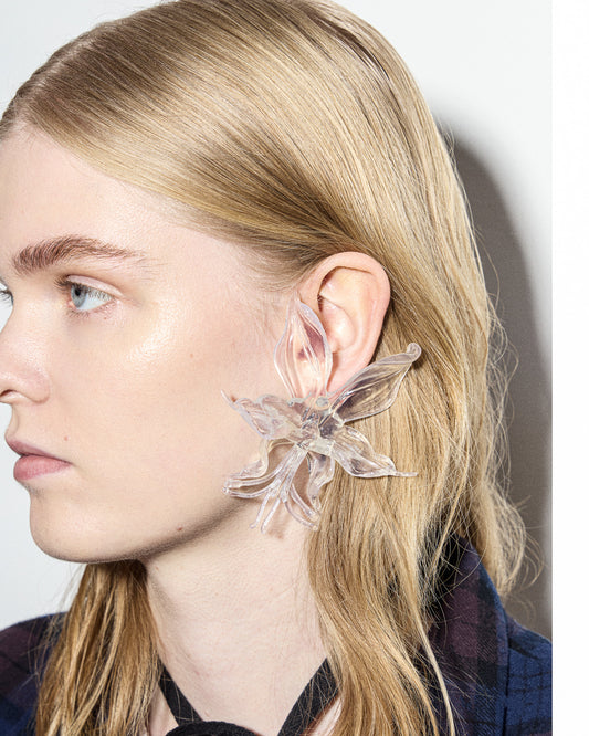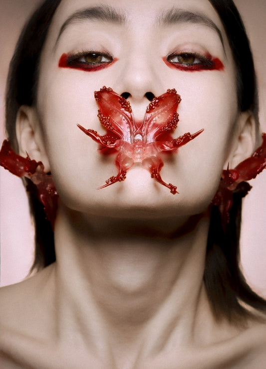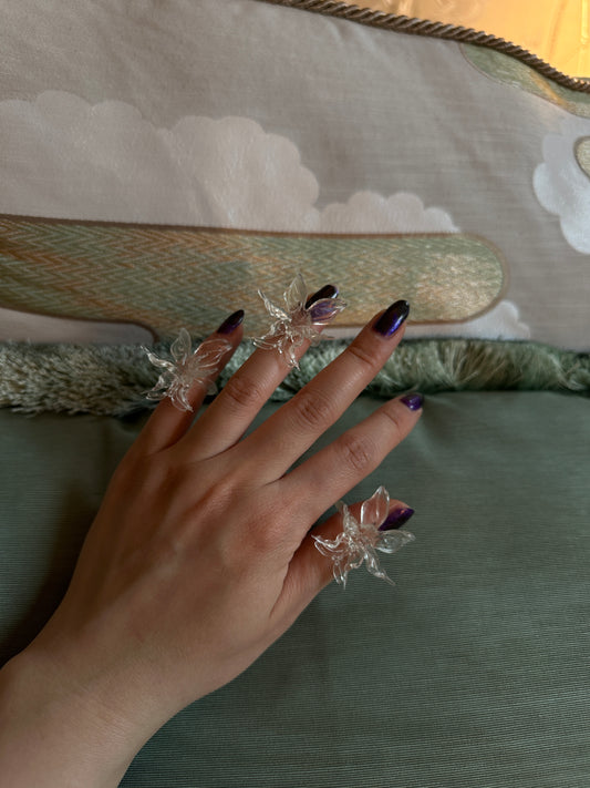 Shy yet striking, she is elegance embodied. Her petals are porcelain-thin, holding secrets only the breeze can hear. Each 3D-woven line carries a whisper — ethereal messages suspended in time.