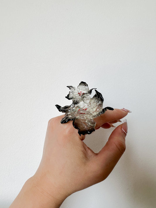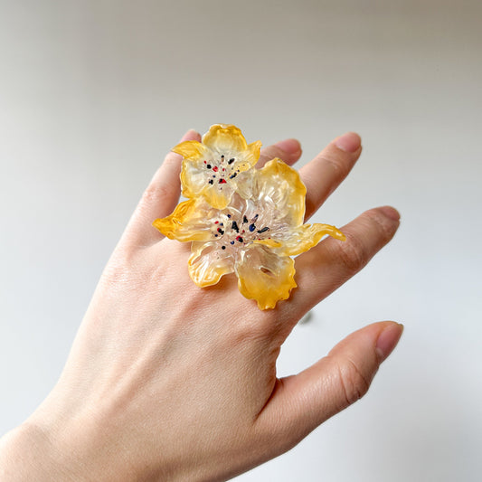 Daffodil Flower Ring Nº1 - Burnt Orange Edge