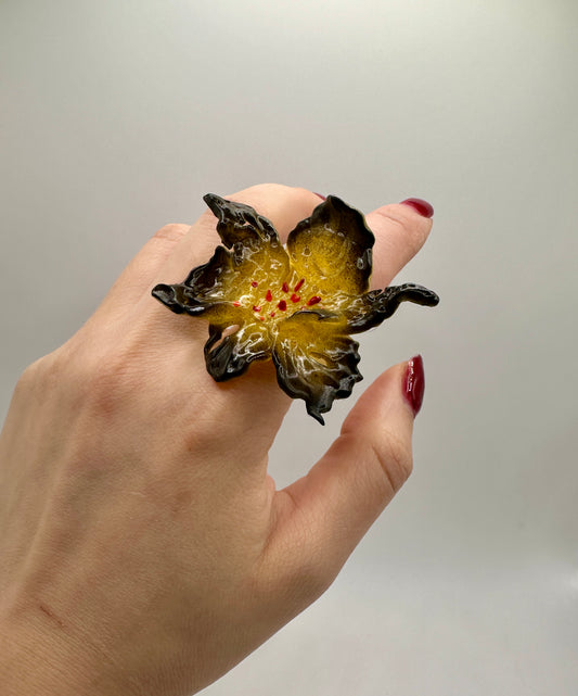 Daffodil Flower Ring Nº1 - Black Edge & Yellow