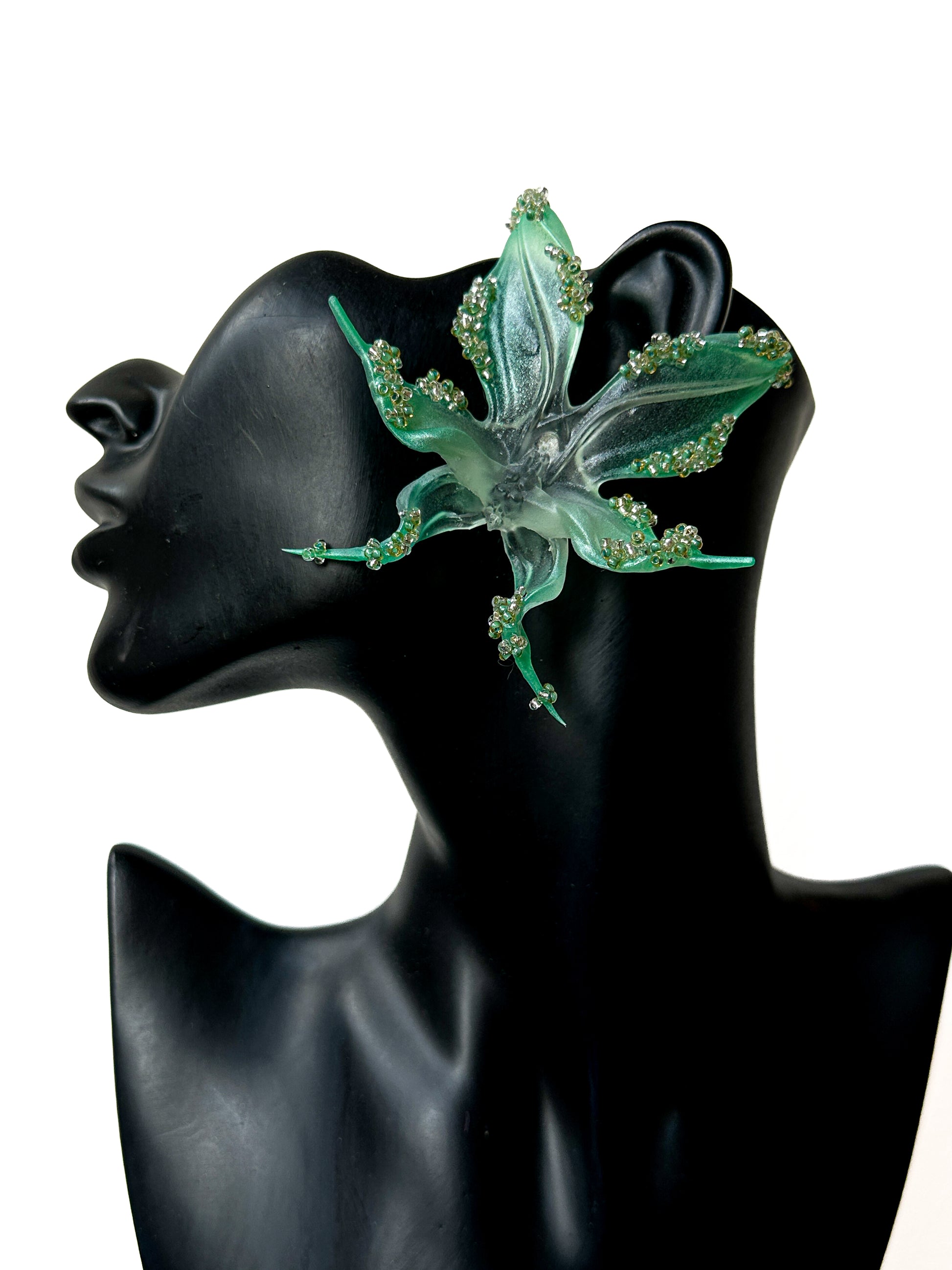 These exquisite statement earrings celebrate the harmony of 3D printing and fashion textile craftsmanship. Created in small batches, each pair is meticulously handcrafted and coloured, adorned with high-quality Japanese glass beads for an added touch of luxury.