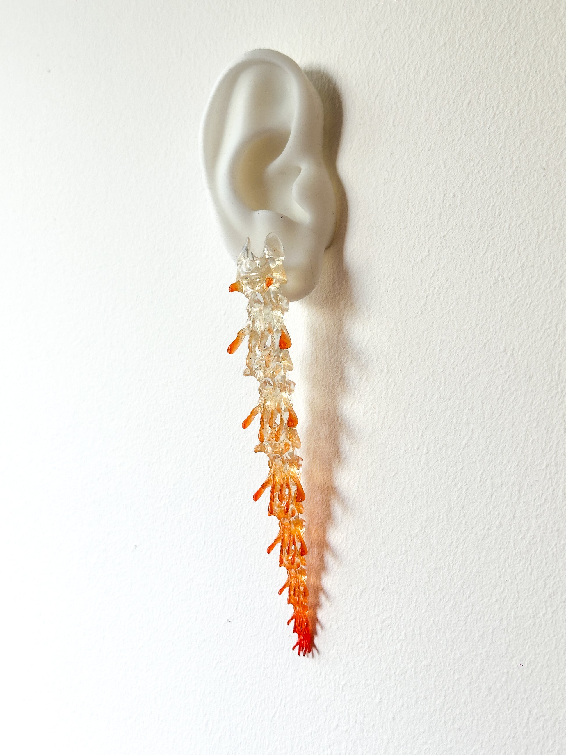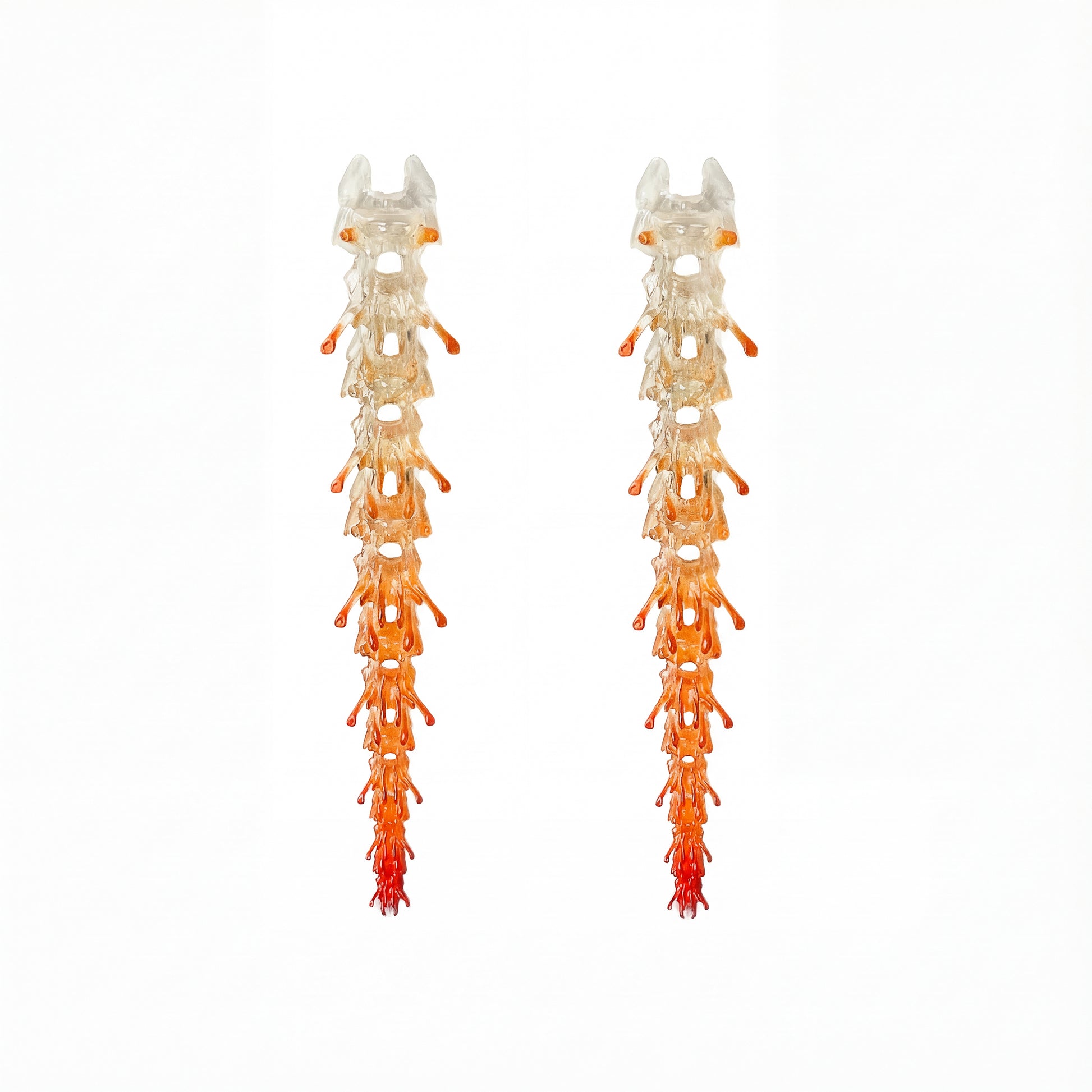 OceanSpine Petals Earrings are a mesmerizing hybrid of human spine and fish bones. Their skeletal, ethereal form echoes the barren beauty of winter branches—stripped yet resilient. With abstract elegance, they whisper of the sea's rhythm and the delicate fragility of nature, a sculptural balance between strength and grace.