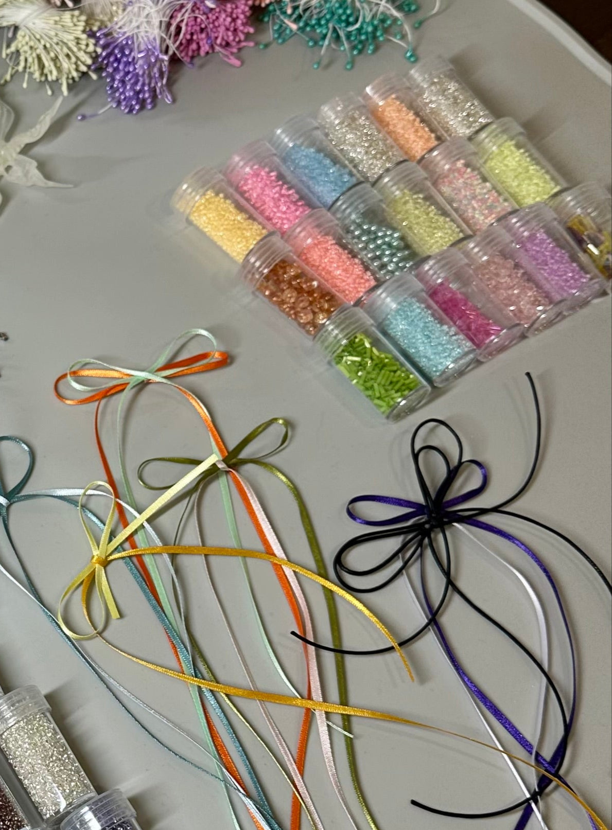 Around a table laid with Japanese glass beads, shimmering sequins, delicate ribbons, and fabric fragments, you’ll be guided by Ivy J Studio and Studio.jz in a private, hands-on session. With gentle music, flowing drinks, and only a few like-minded guests, the workshop offers a setting that feels personal, creative, and enchanting.
