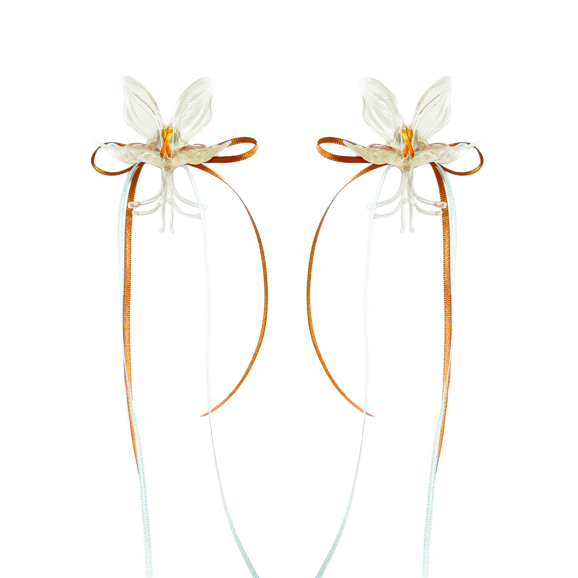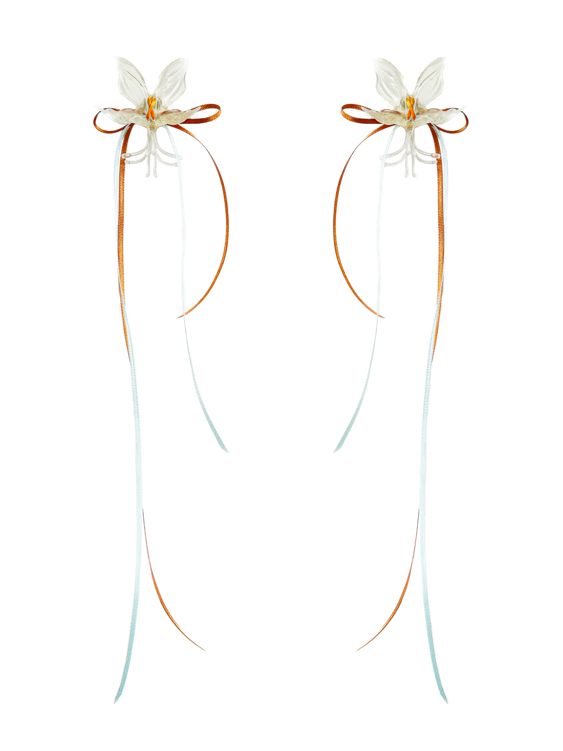 White Orchid Double Ribbon Earrings -Blue& Orange