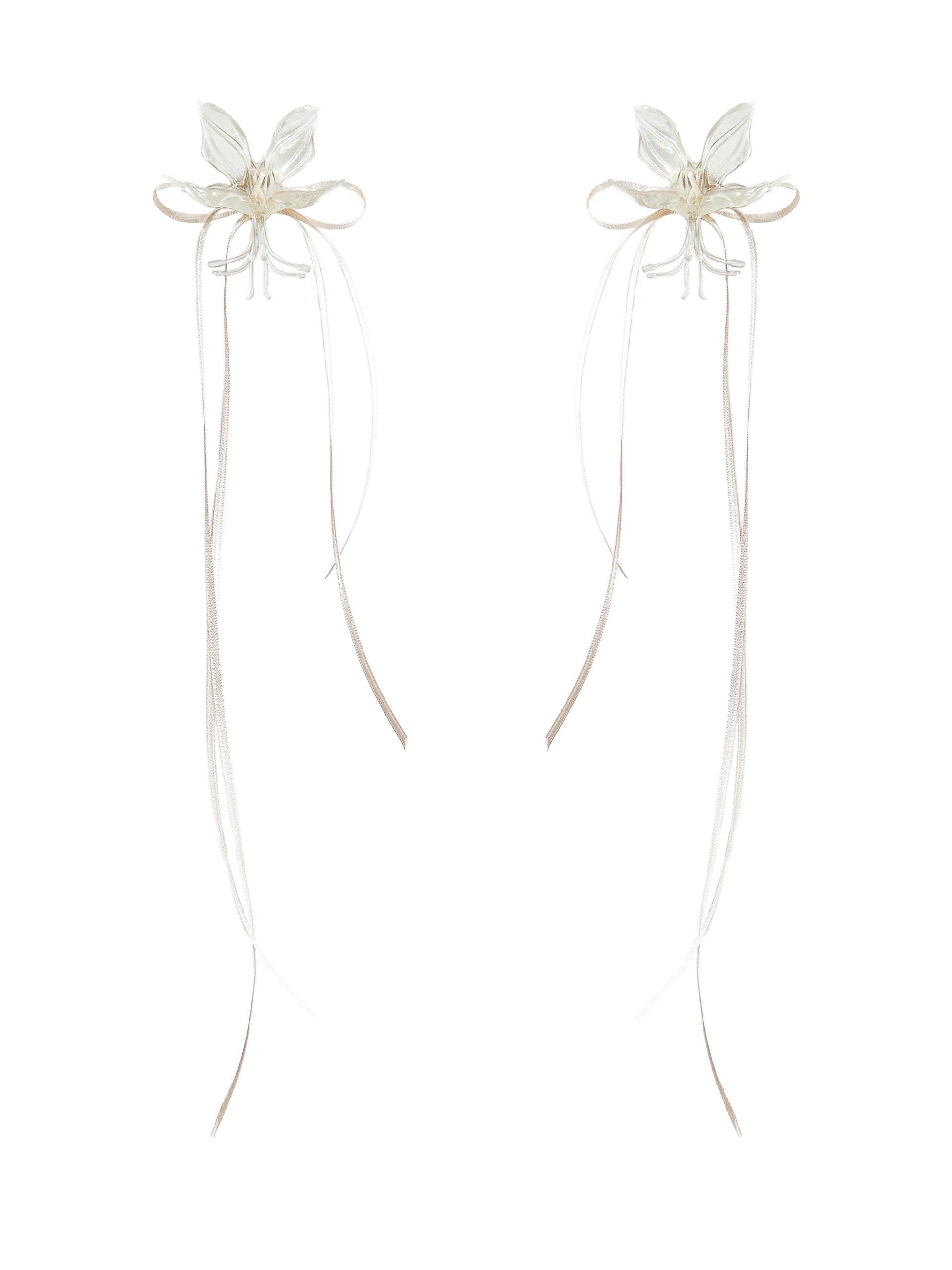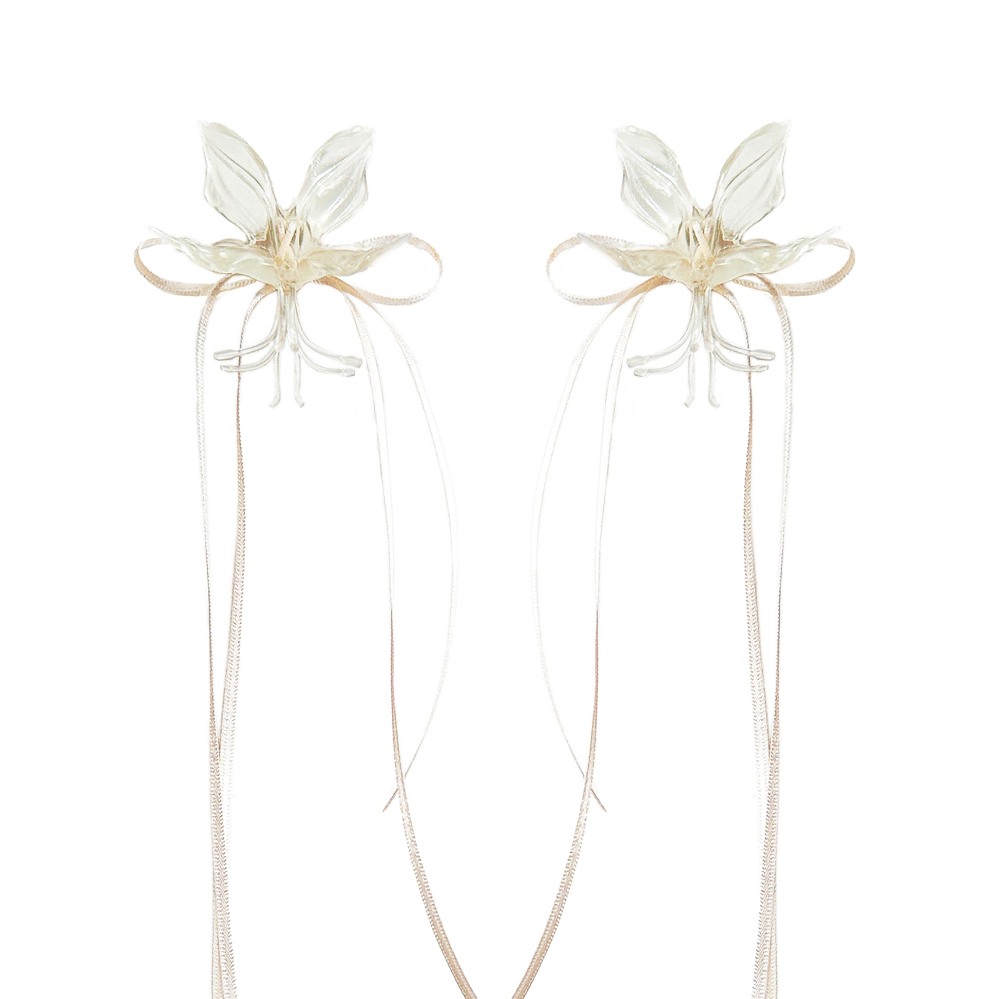 White Orchid Double Ribbon Earrings -Cream