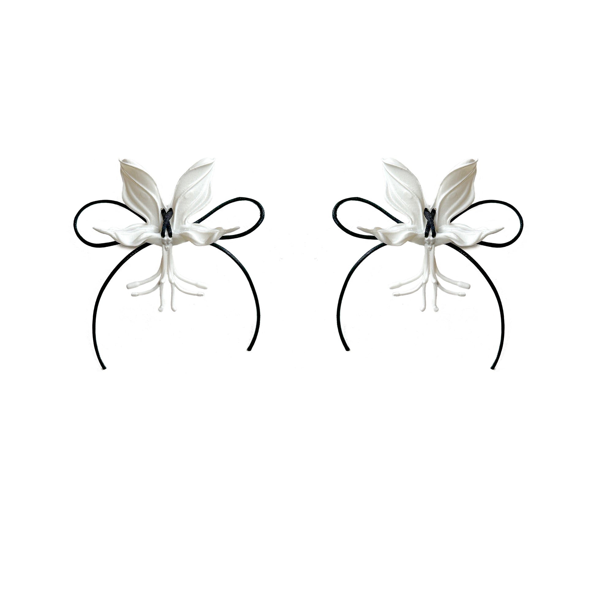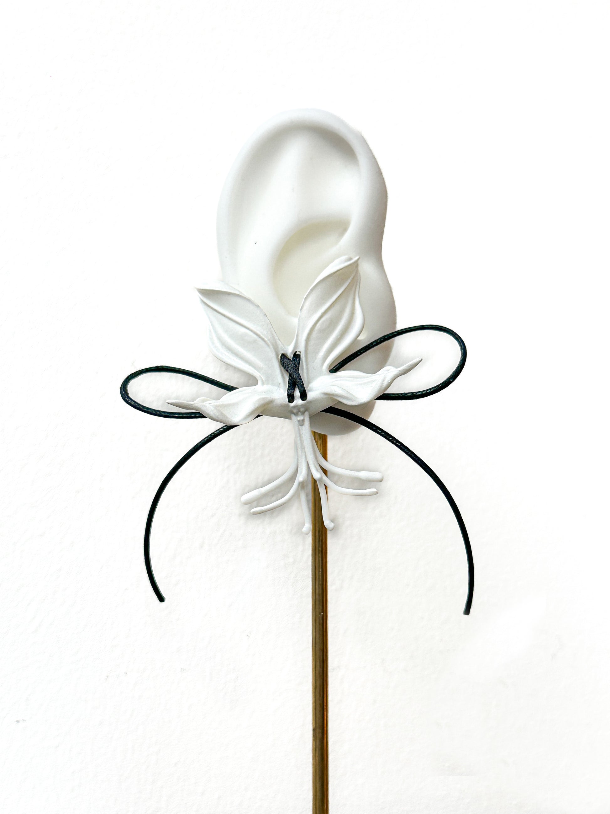 The ethereal petals, porcelain-thin and gracefully sculpted, whisper delicate secrets in every 3D-woven curve. Suspended as if caught in a timeless bloom, they sway elegantly with each movement, embodying nature's artistry reimagined.