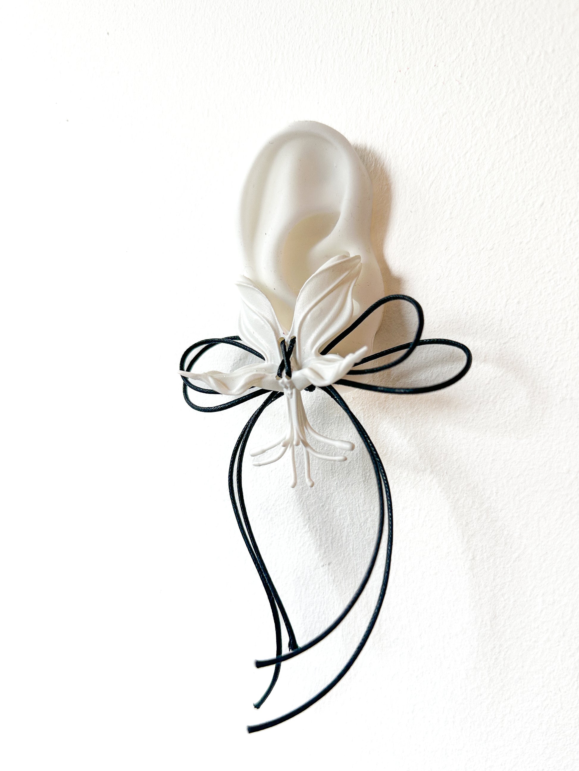 The ethereal petals, porcelain-thin and gracefully sculpted, whisper delicate secrets in every 3D-woven curve. Suspended as if caught in a timeless bloom, they sway elegantly with each movement, embodying nature's artistry reimagined.
